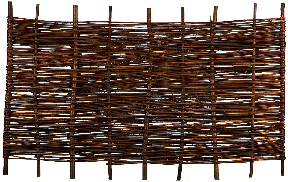 Der ASO-Weidengeflechtzaun ist gefertigt aus ölbehandelter Weide, geflochten auf stabilen Haselnussruten. Der natürlichste Zaun, wie er schon vor tausenden von Jahren errichtet wurde. Dünne Äste, die um stabile Ruten geflochten werden, geben einen natürlichen Sichtschutz und markieren die Grundstücksgrenze.