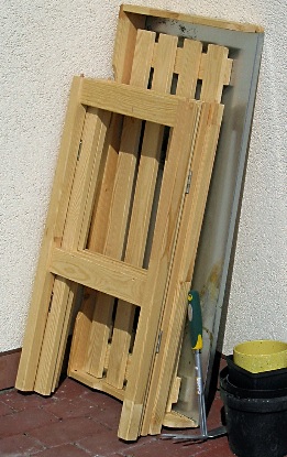 BERNI-Vielzwecktisch ist gefertigt aus roher Fichte, Arbeitsfläche mit verzinktem Blech, inkl. Montagematerial, klappbar.