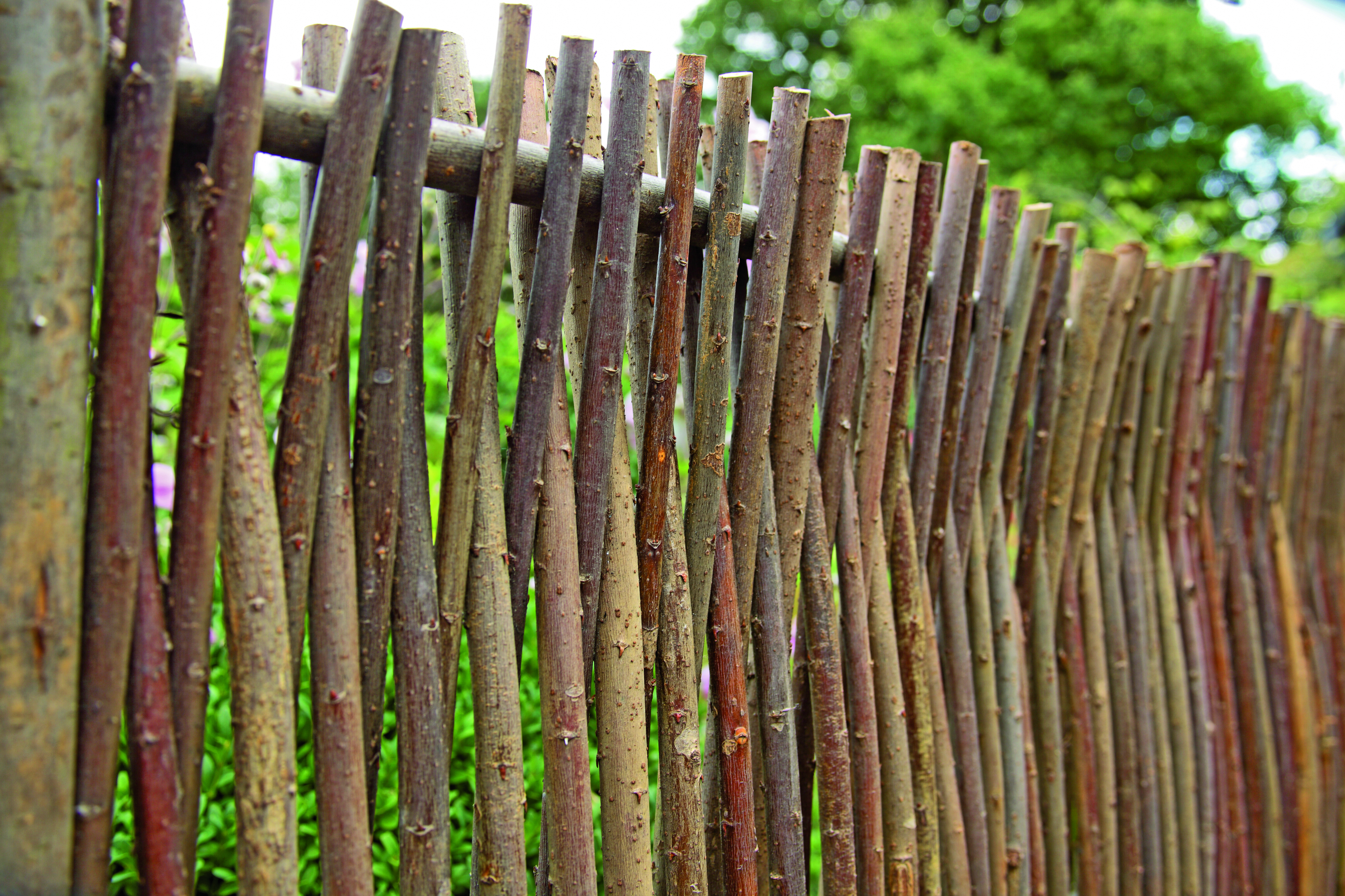 Der PEDRO Haselnusszaun ist aus Haselnussruten gefertigt. Er ist geflochten und wird durch seine stabile Ausführung zum optimalen Sichtschutz für eine natürliche Umgebung.